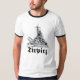 T-shirt with drawing of the famous German battleship Tirpitz of world war II with the name of the ship written with fraktur letters.
