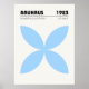 Minimalist Bauhaus-style poster featuring geometric blue circular patterns, advertising the 1923 exhibition held from July to September.