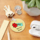 Design colorida e única mostra uma garota curtida em um biquíni amarelo sob um guarda-chuva vermelho brilhante. O escrevendo diz "Bebê da Praia", mas você pode mudar isso para seu nome ou o que quiser.