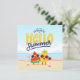 Cena divertida de praia de verão com abacaxi, sol e melancia. Vazio atrás para o seu bilhete pessoal.