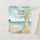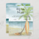 Bebê no Conselho! Chá de fraldas - perfeito para um chá de fraldas de verão. Tema da praia. A design de aquarela tem uma cena oceânica e de praia com surfboard, palmeira e chapéu de verão.