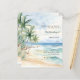 An elegant wedding invitation for a beach wedding, destination wedding. A watercolored sandy beach, ocean waves and palm trees as background.