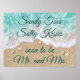 Este Poster de Casamento bonitinho é acentuado com a diversão dizendo Sandy toes Salty Kisses em breve como Sr. e Sra., fazer perfeito para marcar o caminho para sua praia ou cerimônia de casamento tropical, já que é decorada com ondas de praia, areia de praia, estrelas-do-mar, conchas e dólares de areia. Faz parte da Coleção de Casamentos de Ondas Turquesas.