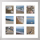 Nove fotos quadradas diferentes de cenas de praia e detalhes todos tirados em Creta, Grécia.