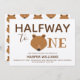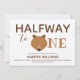 Um bebê meio convite de aniversário com um urso, ursinho, tema em papel kraft. Ele apresenta um rosto bonito de urso como a primeira letra da palavra "Um". Simplesmente personalize este convite, adicione-o ao seu carrinho e divirta-se a celebrar os primeiros seis meses do seu bebê!