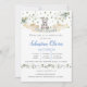 Bear Blue Floral Greenerescência Baptism Convite p