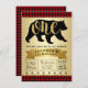 Lumberjack tem os primeiros convites de aniversário com ursos negros e UM de ouro num fundo de xadrez de búfalos preto e vermelho. Este convite para primeiros aniversarios de urso fofo é facilmente personalizado através da simples adição dos detalhes do seu evento. Este é um design impresso sem brilho real.