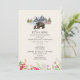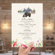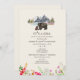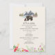 Ilustração inspirada por aquarela de um bebê e mamã parados em frente a montanhas cênicas com lago e árvores verdes com flores silvestres no fundo.