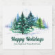 This beautiful custom business holiday party champagne label features gorgeous green Christmas trees in a winter landscape above your customized company name and Happy Holidays. Personalized holiday decor for a corporation or family.