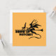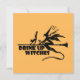 Design com o ditado "Beba Bruxas" com uma bruxa sobre uma vassoura com um gato e um martini.