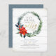 Coma de vamos! Um convite de festas de janto apressado e elegante. Perfeito para uma festa de Natal, coquetéis de Natal, eventos corporativos, casamentos e muito mais! "Coma, beba e seja feliz" é exibido na serifpografia clássica, com letra chic gold para uma reviravolta moderna em um tema tradicional. Uma coroa de água floral enquadra o texto com folhagem verde profunda, bagas de inverno e uma flor de poinsettia vermelha. O fundo é uma imagem de madeira branca e intacta, com poços de dourado falsos. A coroa de Natal e a madeira rústica dão uma boa sensação a este convite. Estas folhas de papel se invertem a uma cor azul-lacrimejante com um padrão de diamante branco saboroso. Como parte da seleção orçamentária no Zazzle, esta folha não é um tamanho de convite padrão ou qualidade de papel. Se quiser que este design num cartão de convite o encontre na nossa loja ou utilize o Zazzle Make Machine para o transferir para o produto da sua escolha.