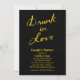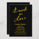 Este convite para chás divertidos é acentuado com "Bebado no Amor" em uma barra de ouro ousada, que tem o aspecto de folha de ouro, e faz este convite na moda, tendências e elegante. Outros itens de coordenação podem ser encontrados na Festa de solteira da Coleção do Amor que contém t-shirts, tatuagens, posters e frascos fofos.