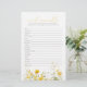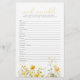 Traga um campo de alegria para o seu chá de fraldas com o Bebê Amarelo no Jogo de Bloom de Palavras Selvagens! Este jogo adorável apresenta lindas embaralhaçadeiras de palavras com temática bebê que terão convidados a sorrir de ouvido para ouvido. Este jogo encantador é uma doce adição a qualquer evento temático para bebês. Os jogadores vão se divertir desembaraçando as palavras inspiradas no bebê. É uma maneira sem esforço de manter seus convidados noivos e entretidos enquanto celebram a mãe e o bebê. O Jogo da Morte Amarelo em Flor Selvagem é um jogo obrigatório para qualquer mãe que queira jogar um chá de fraldas encantador e leve. Veja seus convidados se acenderem à medida que eles se juntam e encaram os desafios das palavras florais juntos. Com certeza cria sorrisos e risos!