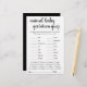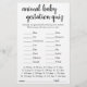 Chá de fraldas de teste de gestação em animais ou sexo revelam jogo de festas (com respostas abaixo) com uma escrita divertida, escrita casual e lisonjeira. CHAVE DE RESPOSTA: Pig-122, Canguru-37, Cavalo-336, Cat-63, Coelho-33, Elefante-645, Duck-28, Ovelha-148, Vaca-284, Baleia-360, Leão-108, DDEL. og-63, Mouse-20, Giraffe-419, Bear-220, Chimpanzee-243, Goat-150 Para outras cores ou produtos correspondentes, visite a loja justFharryn Zazzle ou entre em contato com o designer, c/o Fharryn@yahoo.com Todos os direitos reservados. #zazzlemade