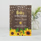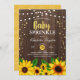 Todos os textos são editáveis, exceto o ouro "BABY" Lindo girassol de aquarela sobre fundo de madeira russa com confete de ouro