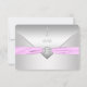 Fita de cetim rosa elegante com centro de diamante, pérola branca, bebezinha dobrada, parece batizante e convite para batismo, RSVP. Adicione seus detalhes à frente e atrás simplesmente adicionando seus detalhes de evento, estilo de fonte, tamanho de fonte e cor e texto. Observe que todos os designs de convite que você encontrará no Zazzle são gráficos impressos em estoque de papel plano sem joias reais, arcos, levantados, gravados em relevo ou peças ou peças adicionadas.