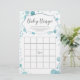 Este cartão de jogo de chá de fraldas apresenta um script moderno sobre o fundo dos pontos azuis do bebê, perfeito para uma festa de chá do bebê!