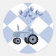 Autocolantes ou selos de envelopes que combinam os anúncios do criança e os convites para chás com o trator azul giro com design de balões, dizendo "É um menino!" Os balões também têm designs de um alfinete de segurança fralda, garrafa de bebê e chocalho. Criado por KLeighE das Ilustrações de Harmonia do Hinterland por KLeighE