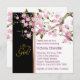 Um convite para chás de fraldas de cereja rosa elegante. Este belo convite para chás de fraldas florescente de cereja é facilmente personalizado para o seu evento simplesmente adicionando detalhes do seu evento, estilo de fonte, tamanho de fonte e cor e texto.