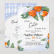 Convites para chuveiro de bebês decorados com uma ilustração de um delicioso galho tangerino com flores no estilo de esboço de aquarela.