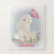 Bebê coelho fofo e borboleta. Quebra-cabeça
