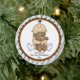 Os primeiros enfeites de natal do bebê caracterizam o bebé pequeno o mais bonito que mantem um urso de ursinho ajustado em um fundo listrado azul & marrom! Personalize com sua informação do bebê e data e você são todos ajustam-se para ir! Presente datado maravilhoso da lembrança para Natal do seu bebê o ø.