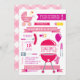 As bandeiras gráficas modernas do divertimento, a grade do assado, o balão, o carrinho de bebê, a garrafa de bebê, o pacifier do bebê, o chocalho do bebê, o cachorro quente, e outros elementos do churrasco fazem este excelente do convite para um chá de BaByQ dos casais. A parte traseira do cartão tem uma ilustração original bonito do teste padrão do tabuleiro de damas do piquenique (você pode mudar a cor personalizando/que edita) pelo pj_design/jammydesign