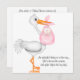 Bebé cor-de-rosa do convite do chá de fraldas da cegonha