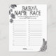 Parte da coleção do Bebê da Brewery, este Jogo Race do Nome do Bebê é perfeito para entretenimento rápido. De A a Z, cada convidado tem que pensar em um nome correspondente. O primeiro a completar a corrida ganha! Você, o anfitrião, vai definir o tempo que os hóspedes têm para jogar, assim como se apenas nomes de raparigas, ou, etc. Todo texto é personalizável para corresponder aos detalhes da sua ocasião perfeitamente ↣ basta clicar no botão ‘Personalizar’.