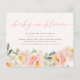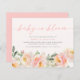 Bebê De Orçamento No Bloom Pink Flowers Convite Para Chá de fraldas. Apresentando flores cor-de-água rosa, "baby in bloom" em uma escrita delicada, e tipografia serif mostrando seus detalhes de festas; perfeita para sua celebração de chá de fraldas com tema floral.
