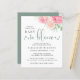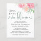 Este bonito convite para chás de fraldas, amigável do ponto de vista orçamental e neutro do ponto de vista do gênero, apresenta os impressionistas florais de cor d'água em rosa e coral e o "Baby in Bloom" escrito em uma mistura de simples tipografia e um roteiro verde de na moda com flores e pinceladas.