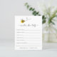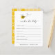 Peça aos seus convidados chás que preencham estes desejos adoráveis para cartões de bebê no seu chá de fraldas. Apresentando uma adorável abelha voadora que combina com nossa coleção de chás de fraldas de Bee. Personalize o nome da Mamãe a ser e a data do chá.