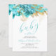 Este doce convite para chás de fraldas apresenta uma borda superior de taruga e flores de ouro e folhagem. Abaixo, as palavras "baby in bloom" aparecem no elegante roteiro de letra rosa. Personalize o texto com o nome da futura mãe no roteiro de turquesa e os detalhes na fonte serif de cinzas de carvão em um fundo branco.