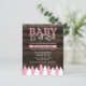 Feita de inverno russa. Chamadas de chá de bebê. Esta moda design apresenta uma floresta de neve com árvores em branco e rosa sobre um fundo de madeira escura. Um toque moderno é adicionado com a fonte divertida do roteiro dizendo "Querida, está frio lá fora."