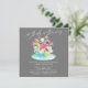 Na moda Um bebê doce está preparando um design de chá de bebê com uma xícara de chá cheia com um buquê de flores cor d'água rosa, amarelas e púrpuras colocadas em uma cinza escura. Sacudir nosso design para ver uma floral coordenada de volta para um toque especial extra. Visite nosso compro para ver nossa coleção de chá.