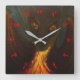 Bebê Dragão com Relógio de Parede Quadrado de Fogo
