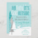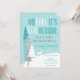 Bebê é convite exterior frio do chá de fraldas com uma cena nevado do inverno no aqua, as cinzas e a cerceta e um cervo pequeno doce.