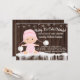 Meninas, bebê, está frio fora do chá de fraldas convite com uma adorável menina vestindo um chapéu de neve rosa giro em madeira rústica e fundo de neve. Esses bonitos convites para chuveiros de bebês em flocos de neve rosa são facilmente personalizados para seu evento simplesmente adicionando seus detalhes.