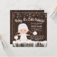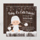 Querida, está frio fora do chá de fraldas convite com um bebê adorável vestindo uma roupa branca de neve e chapéu numa madeira rústica e fundo de neve. Estes bonitos convites para o chá de bebê com floco de neve de inverno são facilmente personalizados para o seu evento simplesmente adicionando os seus detalhes.