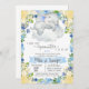 Elefante bebê num convite para chás de fraldas de nuvens. Chamado de chá de fraldas de elefante de flores azuis e amarelas do bebê. O tamanho é 5x7. Para outros produtos correspondentes, perguntas ou pedidos personalizados, entre em contato comigo. Obrigado.