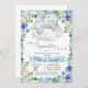 Elefante bebê num convite para chás de fraldas de nuvens. Flores azuis e convite para chás de fraldas de elefantes. O tamanho é 5x7. Para outros produtos correspondentes, perguntas ou pedidos personalizados, entre em contato comigo. Obrigado.