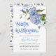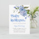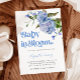 Cartão de convite para chás de fraldas, russo e elegante, com coloração d'água, ilustrado por flores azuis. O texto diz "bebê em flor". Perfeito para o chá de fraldas de um menino.