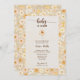 O convite para o bebê em Bloom prensado a flores apresenta um quadro rústico macio com flores silvestres prensadas em fundo de canvas muda. Consulte a coleção para coordenar itens.