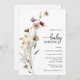 Bebê No Convite Para Chás De Sangue. Este na moda e elegante convite de chá de fraldas 'baby in bloom' apresenta lindas flores silvestres de cor d'água pintadas manualmente organizadas como um adorável buquê e um roteiro elegante de caligrafia que é perfeito para primavera, verão ou chás de fraldas de outono. Localize itens correspondentes na Coleção de Chás de fraldas de flor selvagem do Boho.
