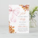 Celebre a alegre chegada de uma garotinha com nosso convite para chá de fraldas "Baby in Bloom". Este cartão encantador apresenta um arranjo floral de aquarelas no outono em tons de bege e e terracota e um arco bem ilustrado.