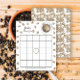 Café de cor aquosa, café e padrão de feijão. Chá de fraldas de café. Chá de fraldas temido com café. Texto com anel de café e com café e xícara de café.