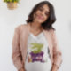 Um design de camiseta de chá de fraldas divertida de halloween com ilustração de um caldeirão com fumaça verde saindo dele com velas e poções ao redor. O texto diz que "um bebê está se preparando"