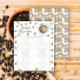 Café de cor aquosa, café e padrão de feijão. Chá de fraldas de café. Chá de fraldas temido com café. Texto com anel de café e com café e xícara de café.