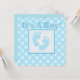 Chá de fraldas de pés de bebê azul para aquele recém-nascido especial. Design tem um par de pés cor-de-rosa para bebês e as palavras "é um menino". Personalize com os detalhes do seu partido.