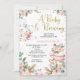 Bebê Floral Rosa é Chá de fraldas de Criação Convite Docinho Um bebê está preparando o convite para o chá de fraldas com pote de chá e xícaras Ilustrações e arranjos florais. O design também apresenta alguns pontos de ouro falsos. Esta menina é um bebê que está fazendo um convite para o chá de fraldas é ideal para um chá de fraldas da menina.